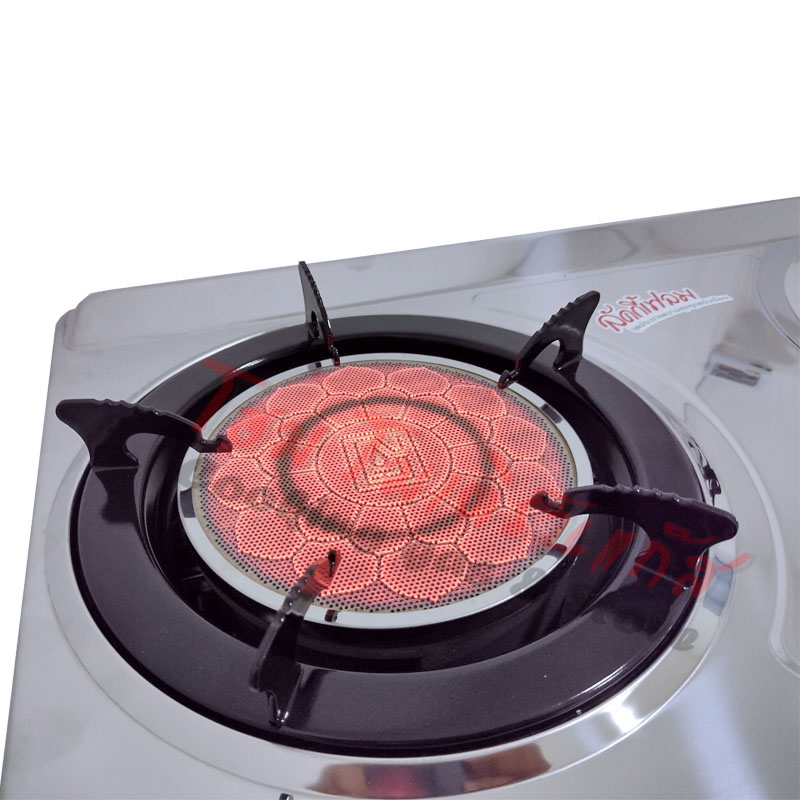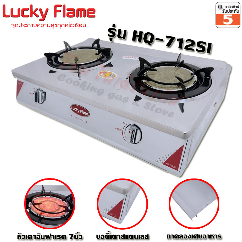 เตาแก๊สตั้งโต๊ะ หัวเตาคู่ Lucky Flame HQ-712SI หัวอินฟาเรด ด้วยวิธีการสะสมและแผ่ความร้อนในแผ่นเซรามิก ทำให้ไม่มีเปลวไฟและไม่เกิดเขม่าให้ก้นภาชนะที่ใช้ดำ ประหยัดแก๊สกว่าหัวแบบธรรมดา ถึง 40% (ทำความรู้จักกับหัวอินฟาเรด) หัวเตาขนาด 7นิ้วให้ความร้อนที่สูง เหมาะกับการ อุ่นอาหาร ทำอาหารประเถท ต้ม แกง