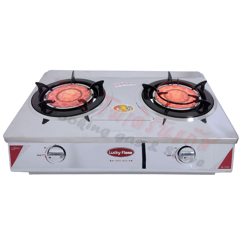 เตาแก๊สตั้งโต๊ะ 2 หัวอินฟาเรด Lucky flame สแตนเลสหนา HQ-712SI